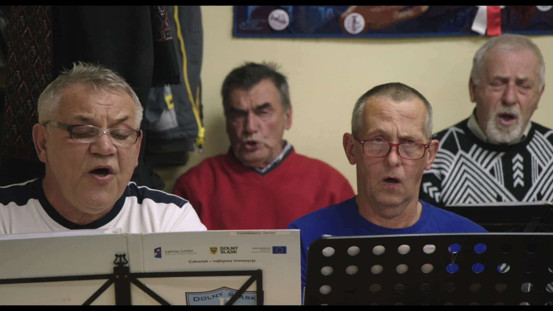 Les bruits des machines se détachent des noirs profonds, et des hommes s’apprêtent à descendre sous terre. Autour d’eux, rien d’autre que la nuit. La caméra passe de la mine à la chorale où se retrouvent Henio, Marcin, Rommek et Kaziu. Les voix basses, bourdonnantes et graves se confondent dans des chants traditionnels, répétant minutieusement chaque partition. Au fil des chants, la caméra s’attarde à capturer des moments de doutes, où certains mineurs évoquent leur métier, leur avenir et leurs peurs de voir la fermeture de la plus grande mine de cuivre de Pologne. Alors que le film consigne principalement les gestes et les voix de la chorale, montrant chaque moment de préparation, il propose aussi un portrait croisé de vaincus et isolés de l’Histoire, celui des mineurs polonais au seuil de leurs inquiétudes. Le réalisateur arrive alors à faire vivre des portraits singuliers et personnels au cœur de ce tableau où chaque séquence est traversée par la spiritualité et la poésie des voix. Finalement, Vassili Schémann parvient à saisir la sensibilité des mineurs au détour de leur quotidien, entre la mine et la chorale, dans un portrait en voix remarquable. Car s’il est coutume de saisir l’image d’abord, l’image malgré tout, Vassili Schémann quant à lui, laisse une place essentielle au son, à la voix.