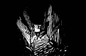 Le travail de la mine a laissé son empreinte. Ses éboulements, sa violence quotidienne et ses coups de grisou résonnent encore dans les mémoires, et si les images semblent appartenir au passé, le souvenir et les traces laissées sont encore vivaces. Deux courts métrages belges d’animation se sont emparés du sujet. Mémoire fossile d’Anne-Laure Totaro suivait le voyage d’un enfant au cœur du passé de son grand-père atteint par la silicose, maladie provoquée par l'inhalation des poussières de charbon. Si ce film, à l’ambiance onirique, offrait un beau travail graphique au fusain, il souffrait aussi d’un scénario quelque peu décousu. Avec Grise Mine, Rémi Vandenitte, lui, décide d’établir un autre lien entre passé et présent. Il nous plonge au cœur même de la fosse, en compagnie d’un mineur perdu au centre de la terre. La mine qu’il crée semble tout droit sortie d’une description de Zola, avec son « air mauvais de bête goulue, accroupie là pour manger le monde." Comme dans le film précédent, Rémi Vandenitte a choisi d’évincer toute parole pour laisser place à l’image et à une création sonore remarquable faite d’écho et d’impacts. Le clapotis de l’eau, le gargouillis des insectes, le cliquetis des pas nous entraînent dans un univers angoissant et claustrophobique. Son image, il l’a choisie proche de la gravure, jetant ainsi un pont entre sa texture et sa structure narrative : graver, c’est aussi creuser dans le matériau. Chaque planche, comme un tableau à part entière semble ainsi porter la trace de ce qu’il a été. Les effets de contrastes, sans dégradé de gris, et le subtil jeu de lumières et d’ombres, donnent aux dessins une qualité brute qui n'est pas sans lien avec l'histoire. Les noirs semblent se répandre et inonder le cadre alors que les blancs s’imposent comme des vides qui prélèvent de la matière. Il met ainsi en valeur les formes simples et les motifs qui apparaissent et disparaissent à la lueur de la lampe. Evitant de se laisser envahir par le côté sentimental du sujet (son grand-père était mineur), Rémi Vandenitte conserve une distance, une ironie, qui n’empêchent en rien de faire émerger la conscience de l'Histoire et le désir de mémoire.